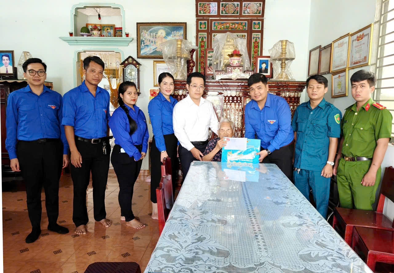 và BCH Đoàn xã Cần Đước tặng quà cho Mẹ Việt Nam Anh hùng.